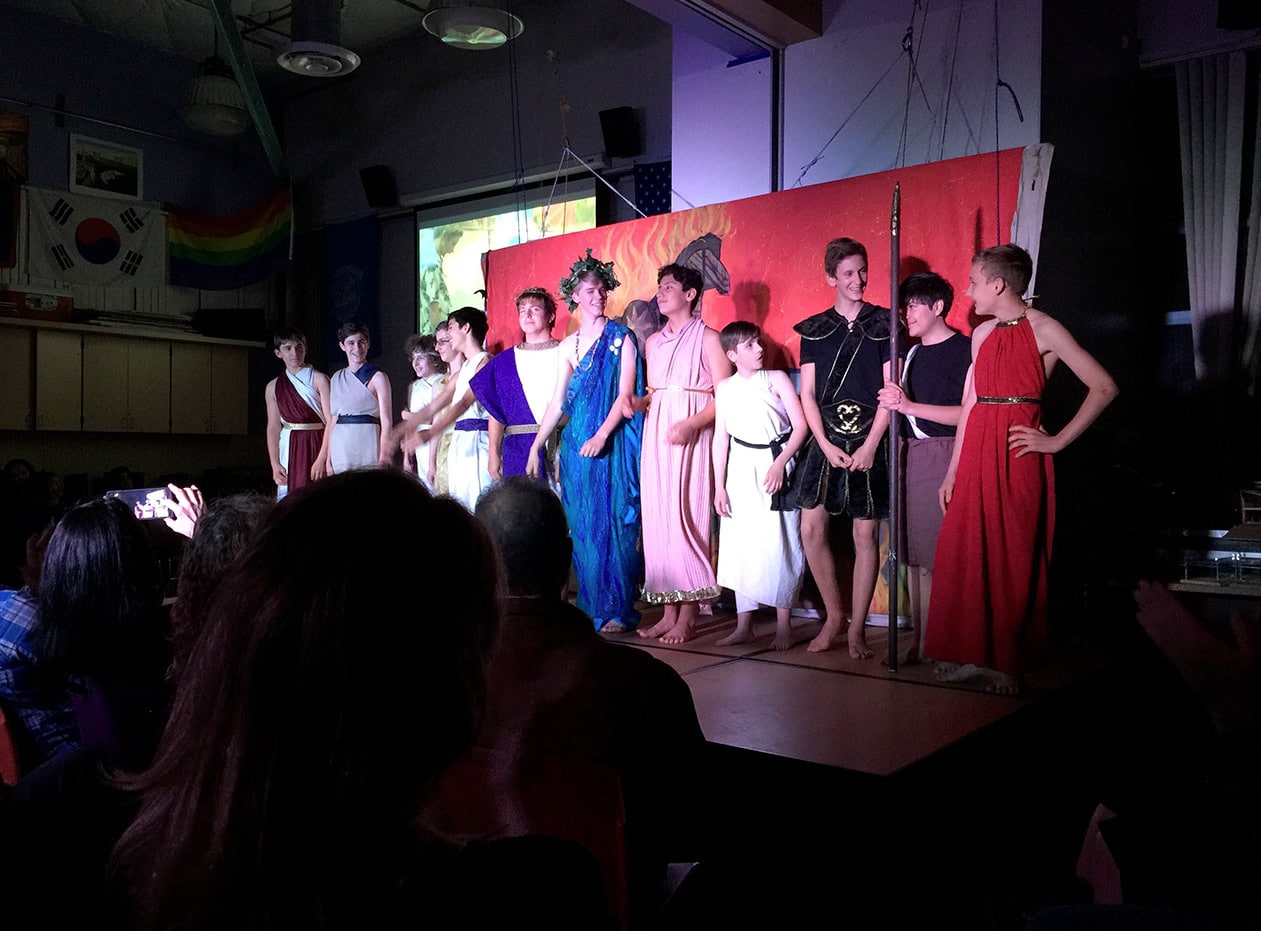 The class started with The Iliad, reading in teams and translating the meaning into modern speech. They continued with the Median Dialog, unpacking the humanistic growth of the Greek society and finally reading The Trojan Women aloud in class. The students decided to have the boys perform that play since in ancient Greek times, the audience and actors were all men.